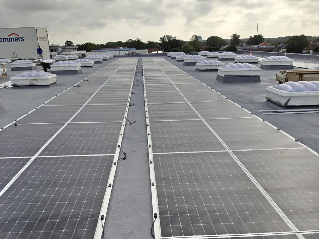 Die Zusammenarbeit mit erfahrenen Partnern und der Aufbau eines Netzwerks aus Installateuren und Solarunternehmen habe auch für das französische Unternehmen Heliup von Anfang an Priorität genossen. „Das 2022 gegründete Unternehmen bietet mit Stykon ein 290-W-Modul an, das in Glas integriert ist, 5 kg/m² wiegt und mit PERC-Zellen ausgestattet ist. Die patentierte Technologie stammt von der französischen Behörde für alternative Energien und Atomenergie (CEA) und wurde anschließend am französischen Institut National de l’Energie Solaire (INES) weiterentwickelt. Die Stykon-Module eignen sich für Dächer mit geringer Neigung und können mit Klebstoffen des österreichischen Industrieklebstoffherstellers Innotec direkt auf die wasserdichte Membran geklebt werden. Die Technologie und der Installationsansatz von Heliup erfüllen […] die Versicherungsanforderungen und bieten eine hohe Leistung bei gleichzeitig geringem Gewicht des Montagesystems. Die aktuellen Projektvorhaben reichen von 36 kW bis 300 kW.“